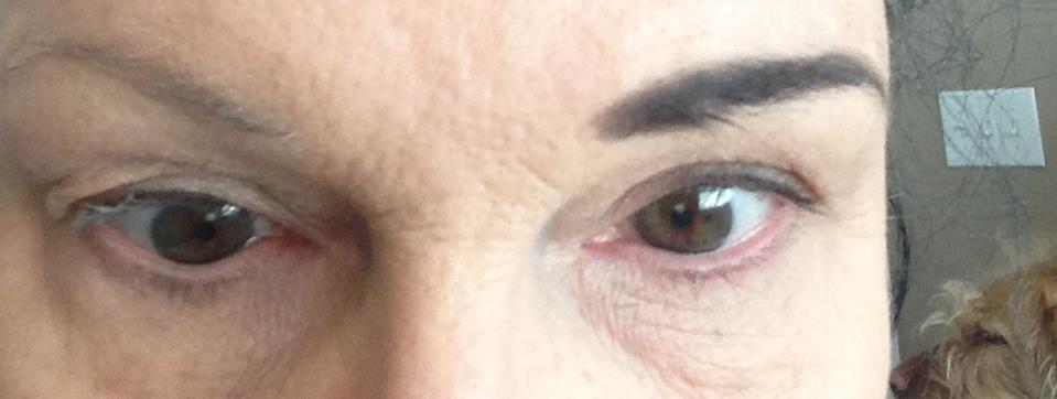 One brow done, the other not. chippy in background