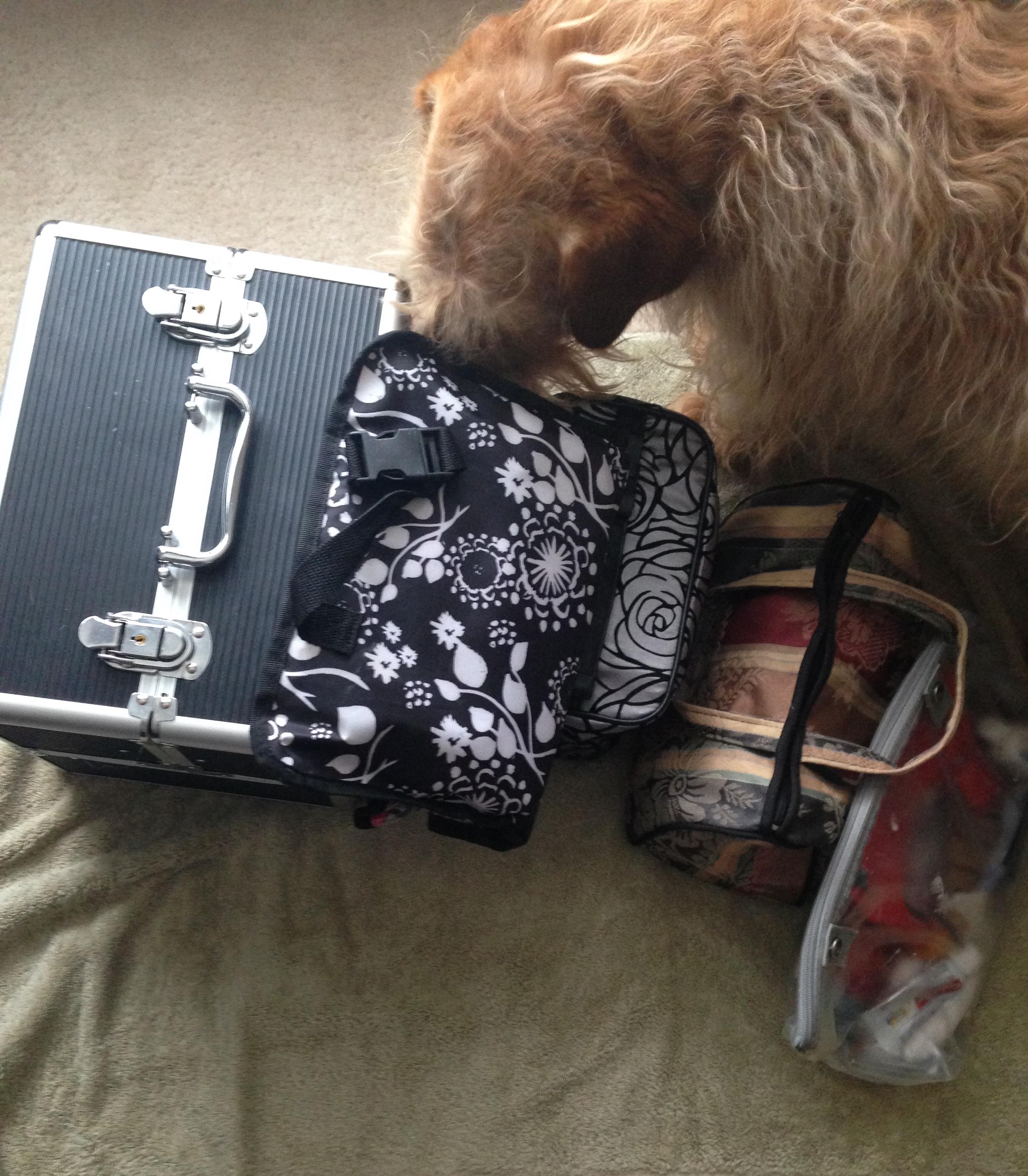 Towel on the floor, Chippy trying to eat my products. A fun project indeed.
