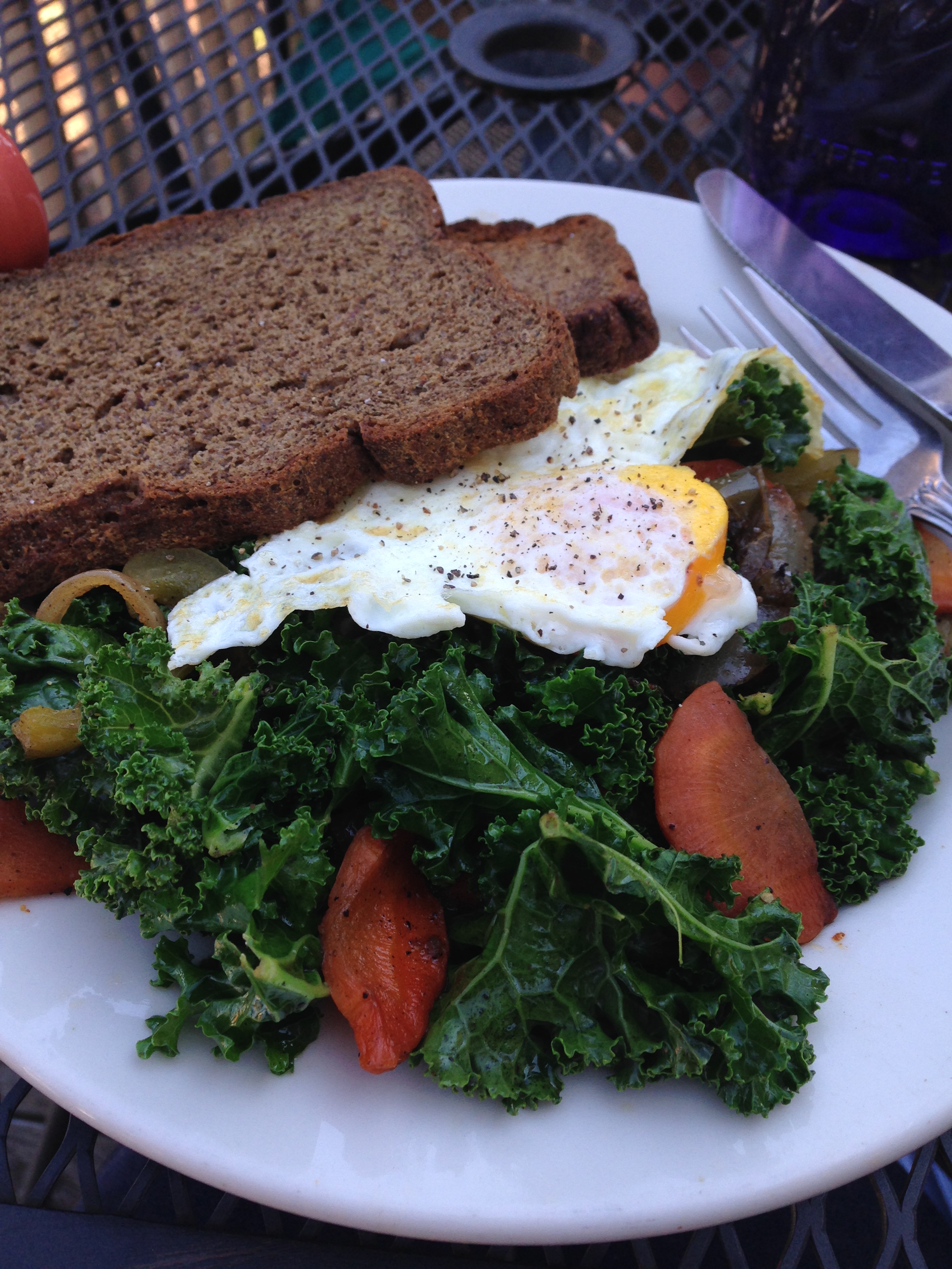 The Farmer’s Table. Eggs Veg Gluten free bread.