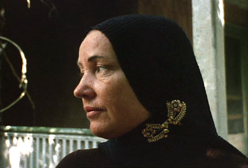 little edie in black headwrap and brooch