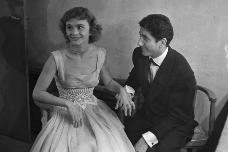 Mars-1954-Paris.-Daniele-Delorme-presente-des-numeros-lors-d-un-gala-en-compagnie-de-Daniel-Gelin
